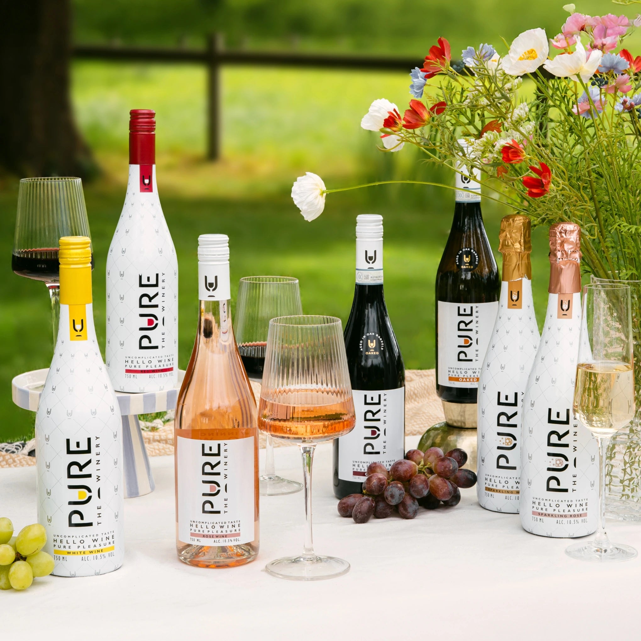De wijnen van PURE The Winery bevatten minimaal 30% minder calorieën ten opzichte van wijnen die ≥ 12% alcohol, koolhydraten en suiker bevatten. De wijnen van PURE The Winery bevatten 10.5% alcohol, 0 gram koolhydraten en 0 gram suiker.